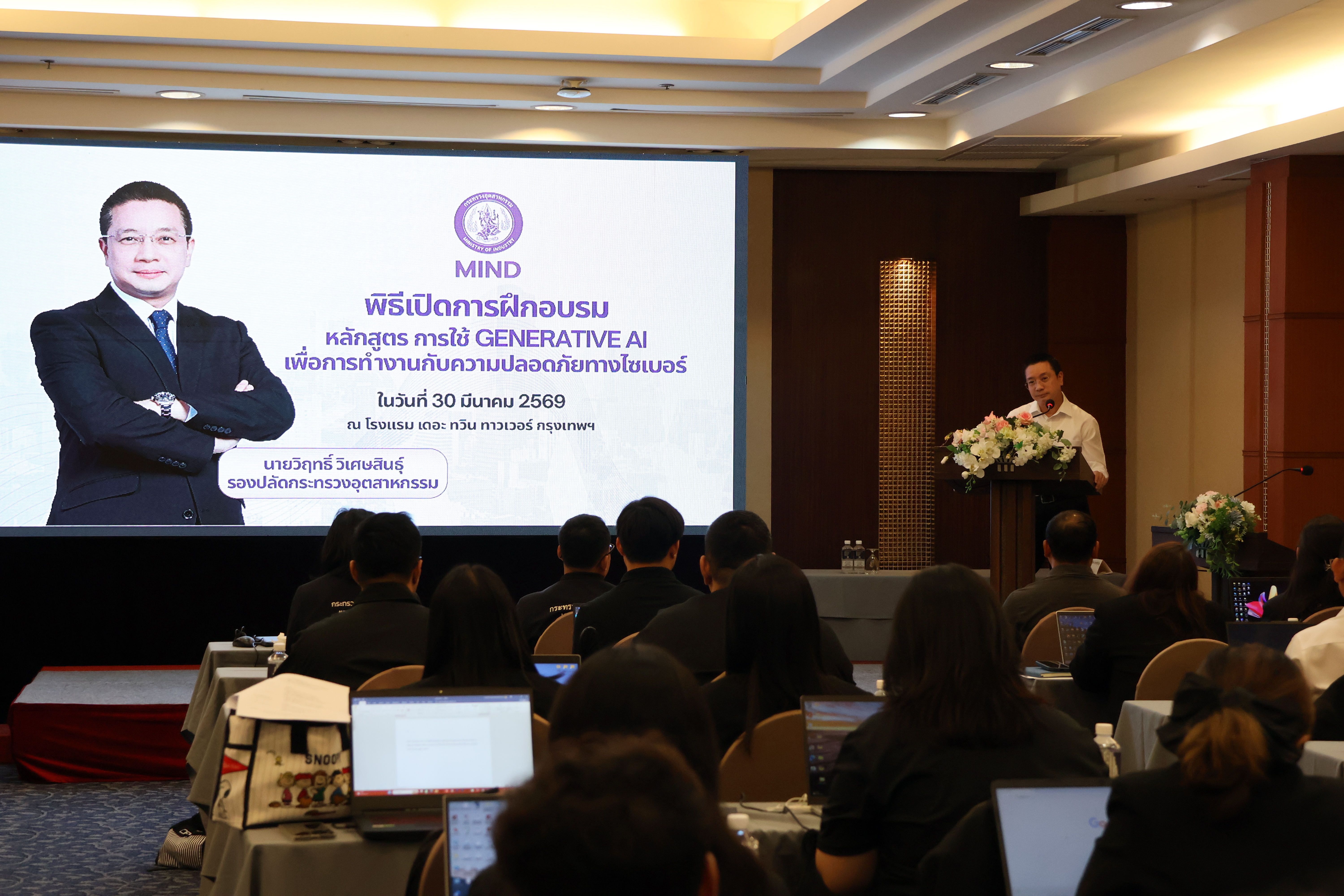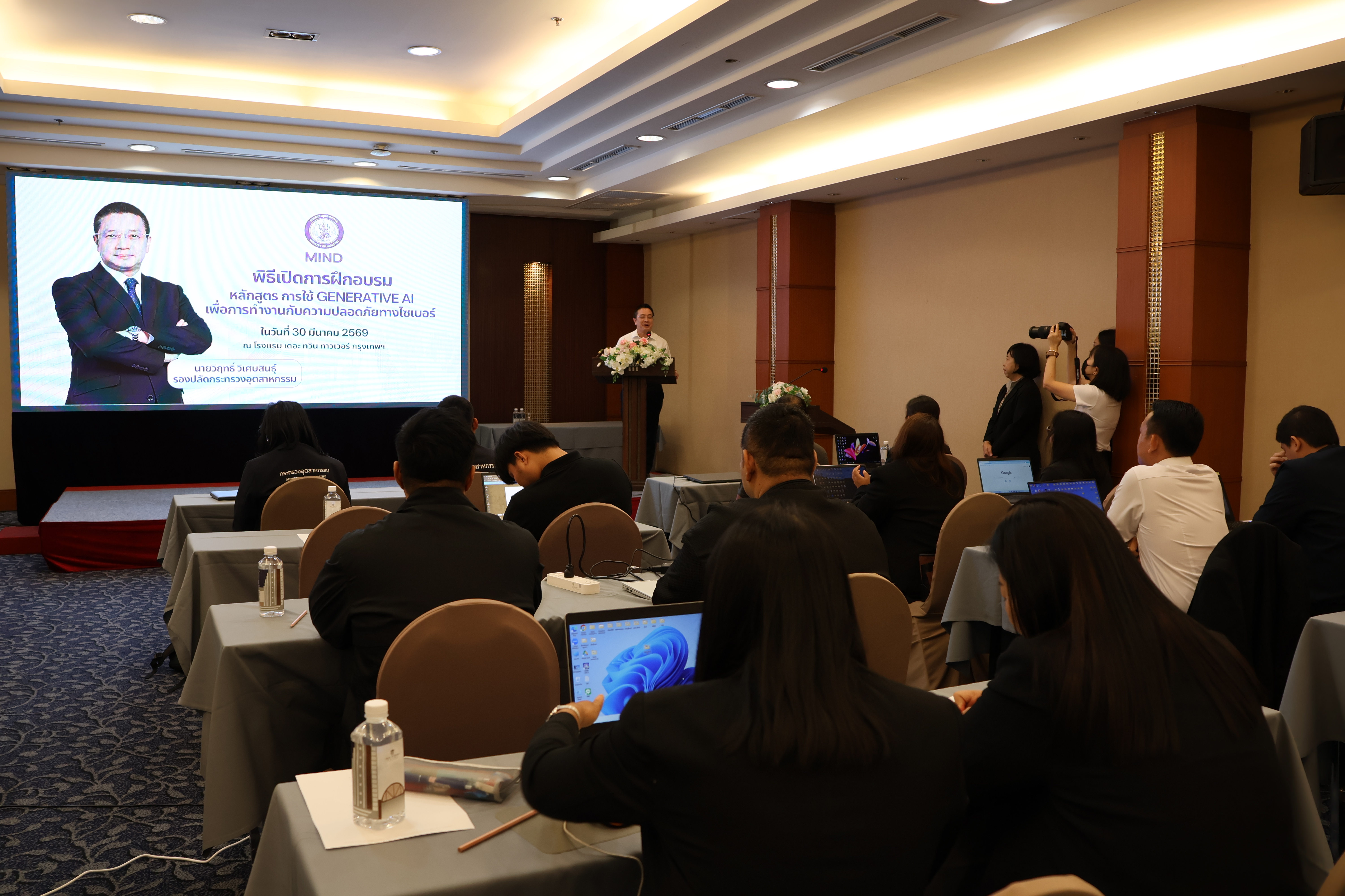 วันที่ 30 – 31 มีนาคม 2569 นางชัญญาภัค มุณีจันทร์ อุตสาหกรรมจังหวัดชัยนาท ได้มอบหมายให้นายรังสรรค์ ศักดิ์ชัยนานนท์ นักวิเคราะห์นโยบายและแผนชำนาญการ เข้าร่วมการฝึกอบรมหลักสูตร “การใช้ Generative AI เพื่อการทำงานกับความปลอดภัยทางไซเบอร์” ณ โรงแรมเดอะ ทวิน ทาวเวอร์ กรุงเทพมหานคร โดยมี นายวิฤทธิ์ วิเศษสิทธุ์ รองปลัดกระทรวงอุตสาหกรรม เป็นประธานในพิธีเปิดการฝึกอบรมดังกล่าว